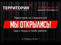"Территория" динамично развивающаяся сеть бар-ресторанов г. Москвы. Концепция сети построена на симбиозе барной культуры, ресторанного обслуживания и клубной атмосферы.